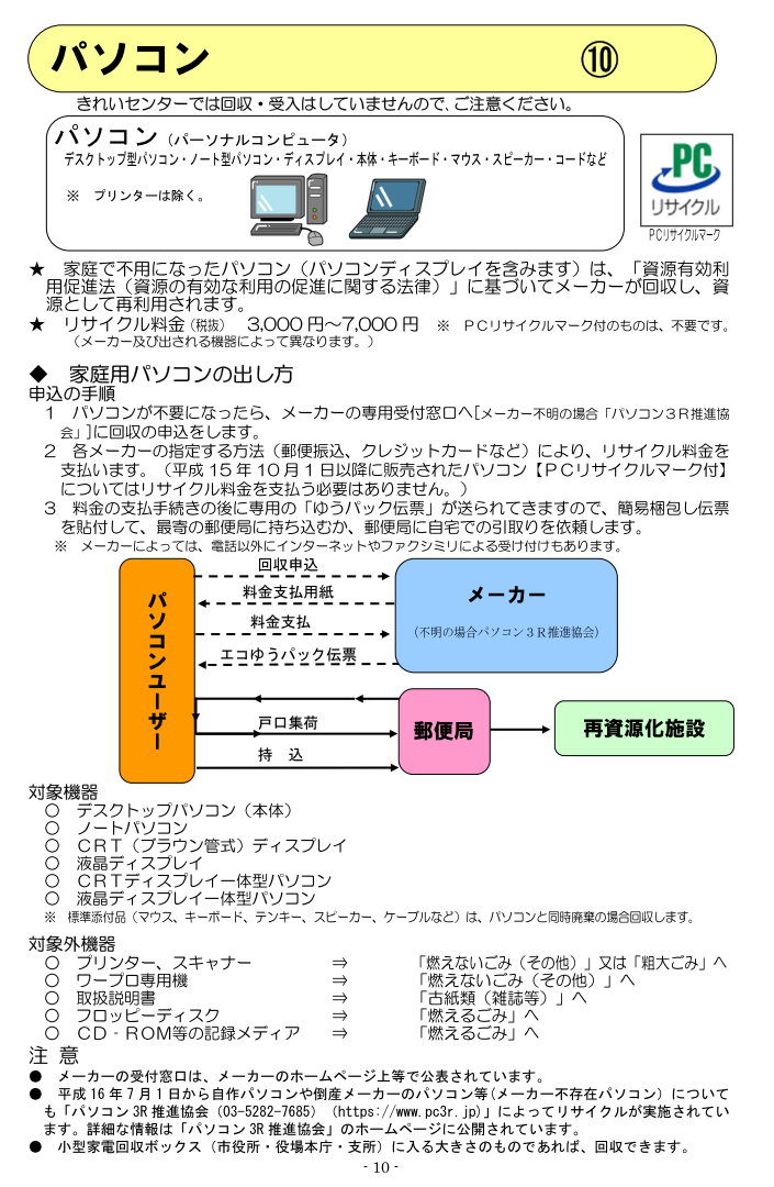・・・>ごみ分別パンフレット・・・>パソコン -p10-